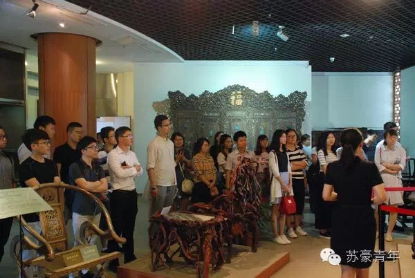活动历时半天,团员青年先跟随讲解员的步伐,参观了艺术馆馆藏珍宝。从刺绣丝织民俗馆到红木雕刻家具馆再到玉石陶瓷漆器馆、字画馆等。现场的年轻同事很多都是第一次看到如此众多的珍宝,被工艺精品的艺术魅力深深折服。