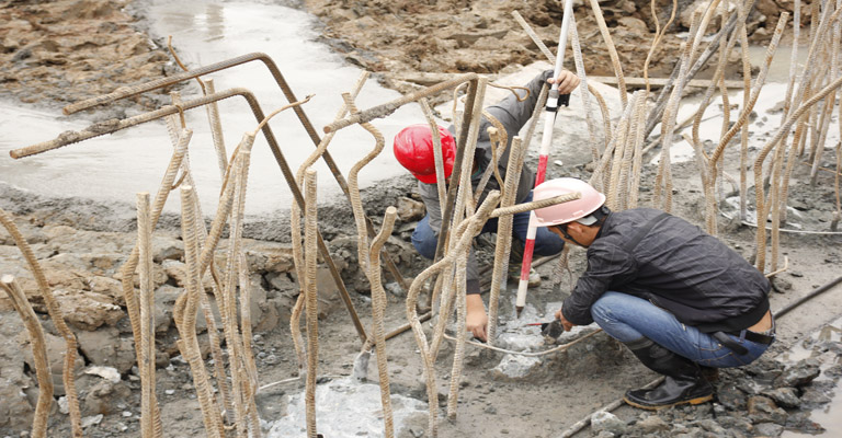 由于地下障碍较多,图纸设计的双轴深搅无法施工,项目部为解决当前困难,特请了3位高级专家会同设计、监理、总包单位在现场进行技术讨论,确保质量的前提下,合理经济地变更了基坑四周止水桩的施工工艺,即将双轴深搅改为三轴深搅和局部高压旋喷。经实际施工后,情况良好。