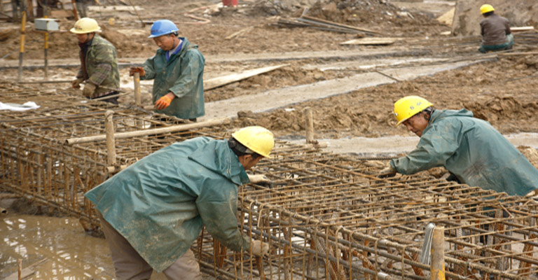 爱涛文化创意中心项目部对进度的高度重视,只要有工作面,无论雨下多大,现场都不停工,工人们冒着大雨,穿着雨衣雨裤绑扎钢筋、支模板等,在这种条件下硬是浇筑了第一道支撑的70%工作量。